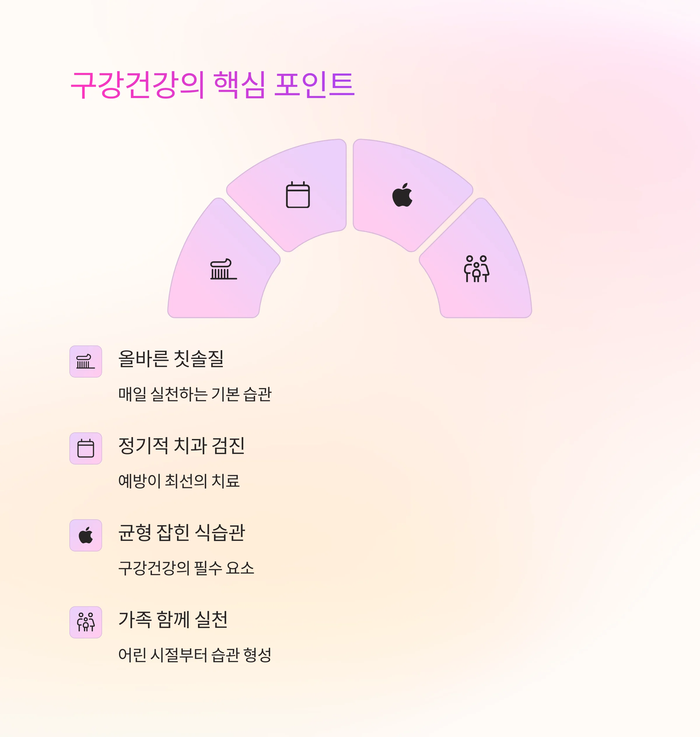올바른 칫솔질, 정기적인 치과 검진, 균형 잡힌 식습관 등은 구강건강을 유지하는 데 필수적입니다.