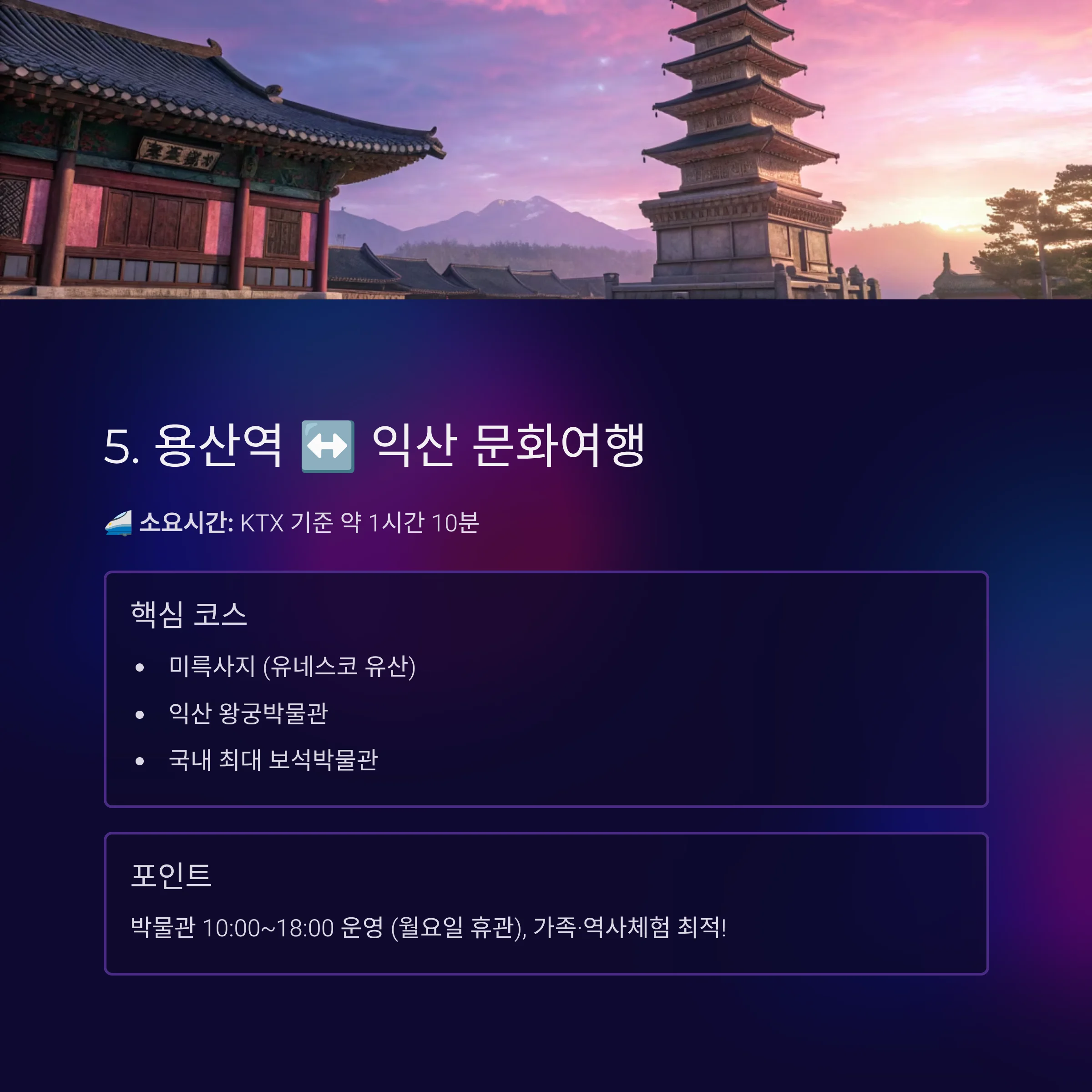 - 설명: 가족·역사체험 여행에 최적