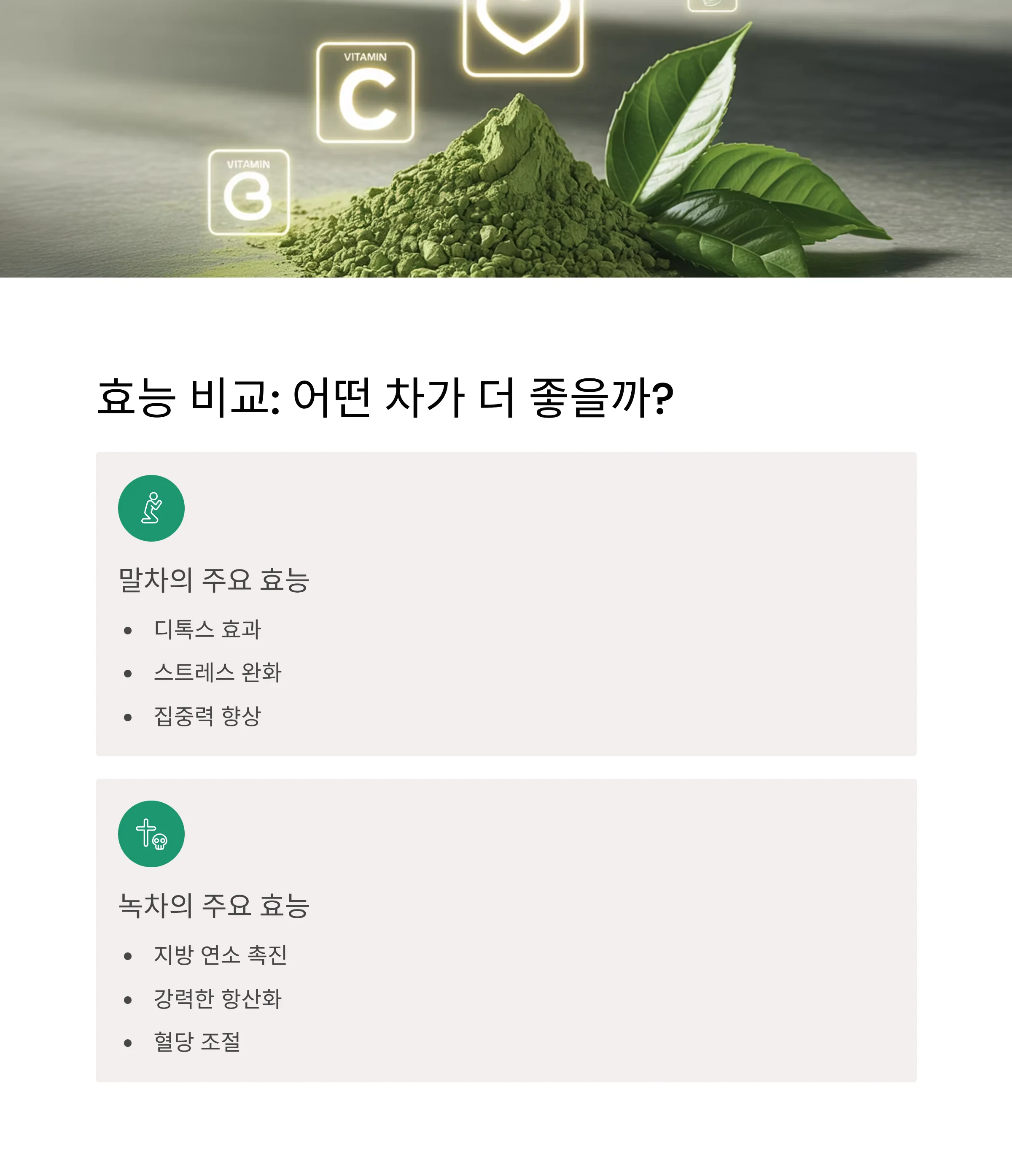 한눈에 보는 말차 vs 녹차 차이점 요약