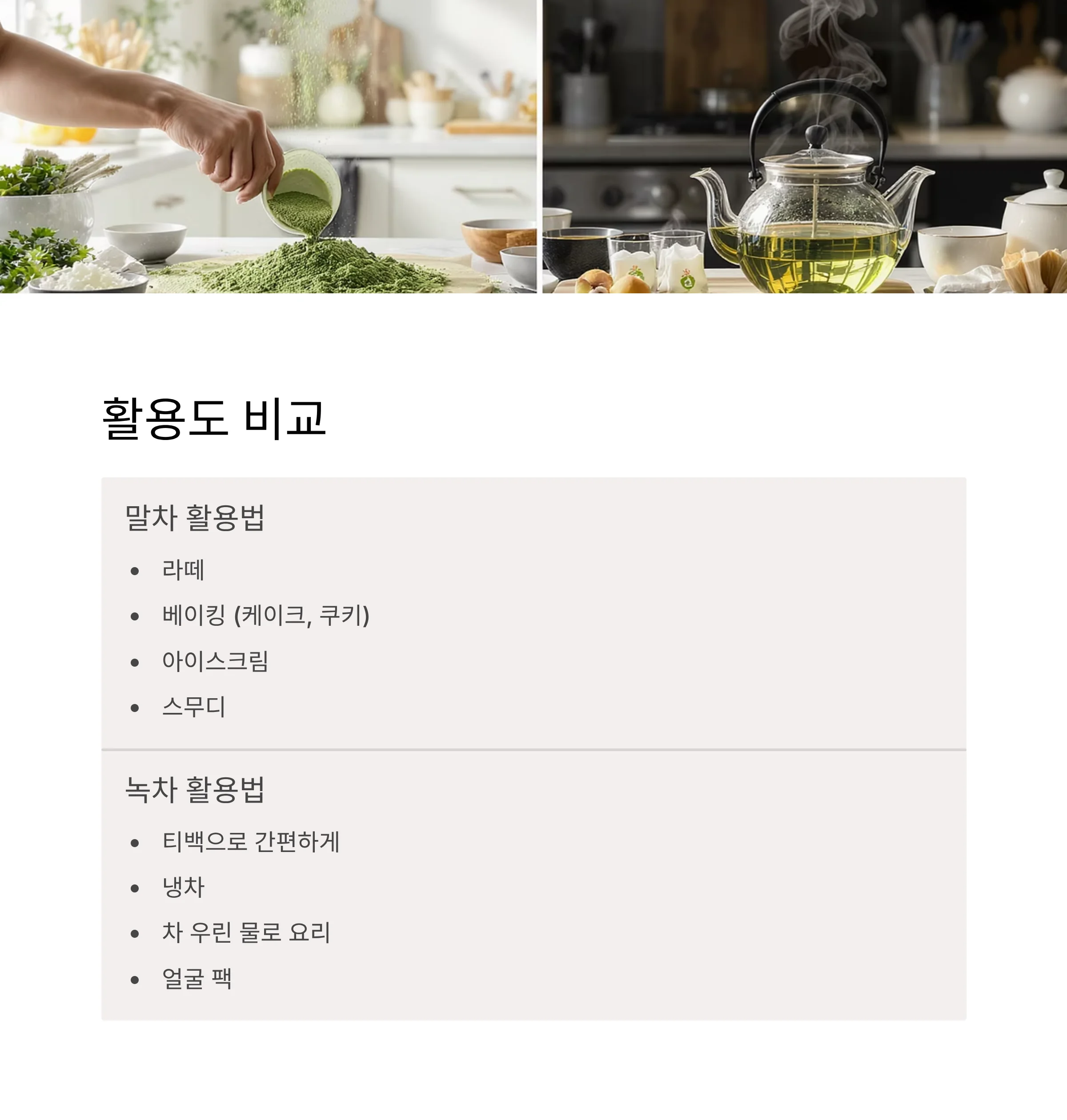 | 구분 | 말차 | 녹차 |
