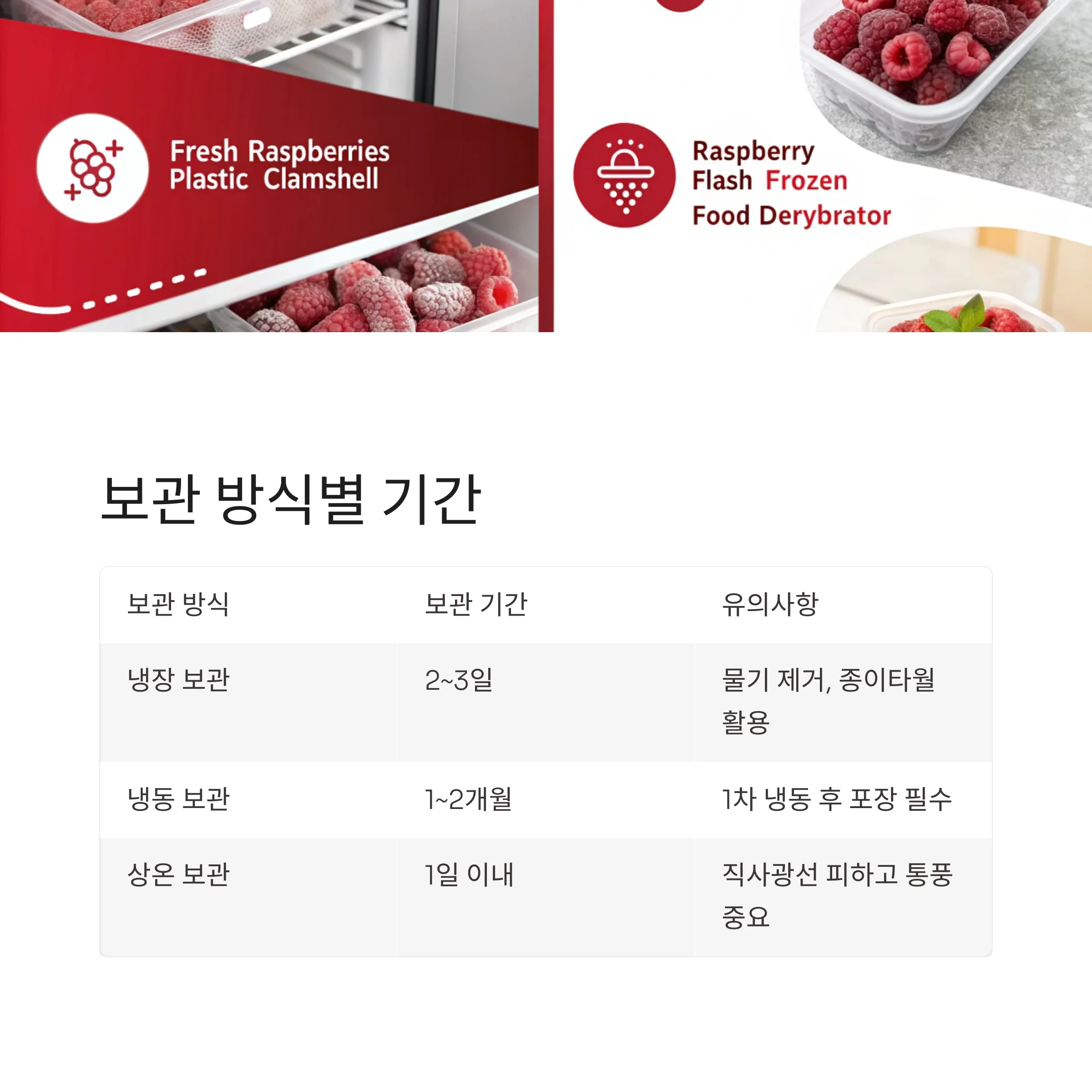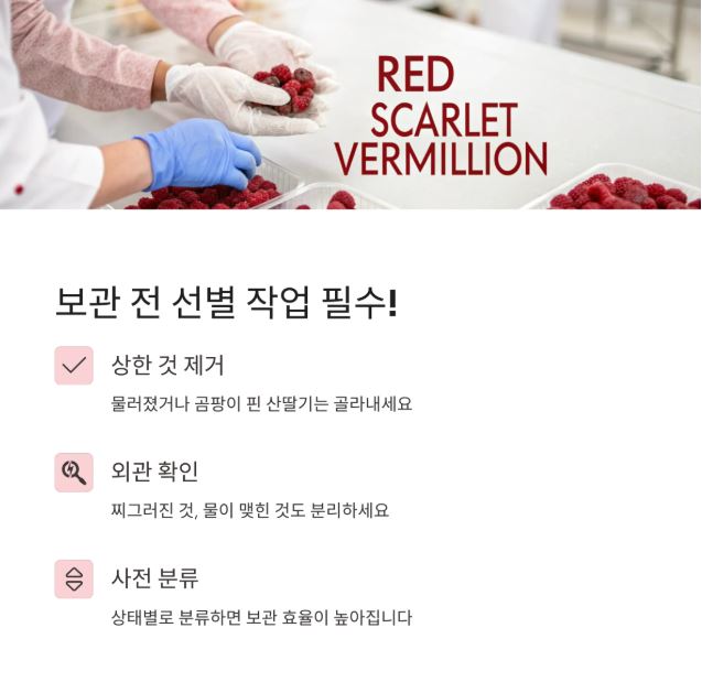 산딸기는 구매한 직후 물로 씻지 마시고, 그대로 보관하는 것이 중요합니다.