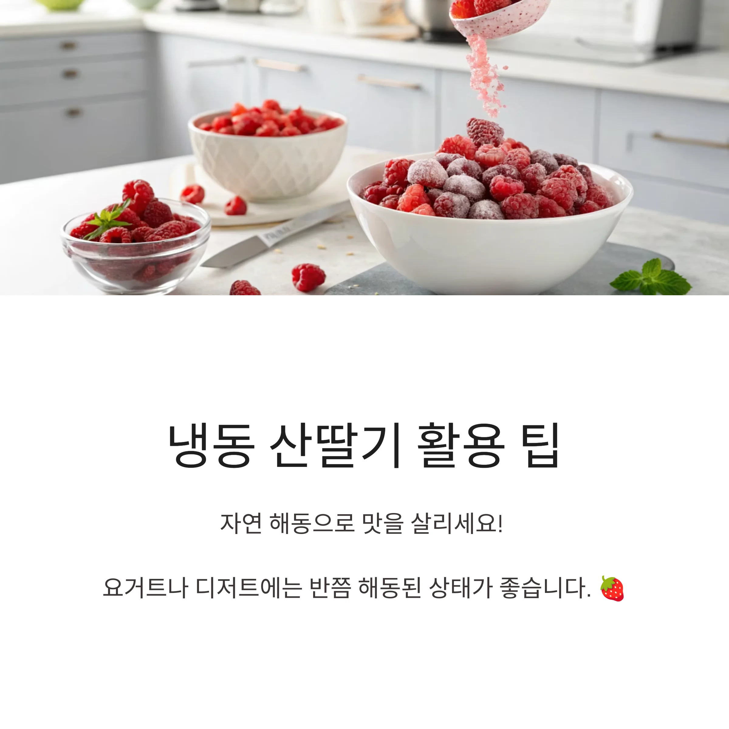 요거트 토핑이나 디저트 재료로 활용할 때는 반쯤 해동된 상태도 좋습니다.