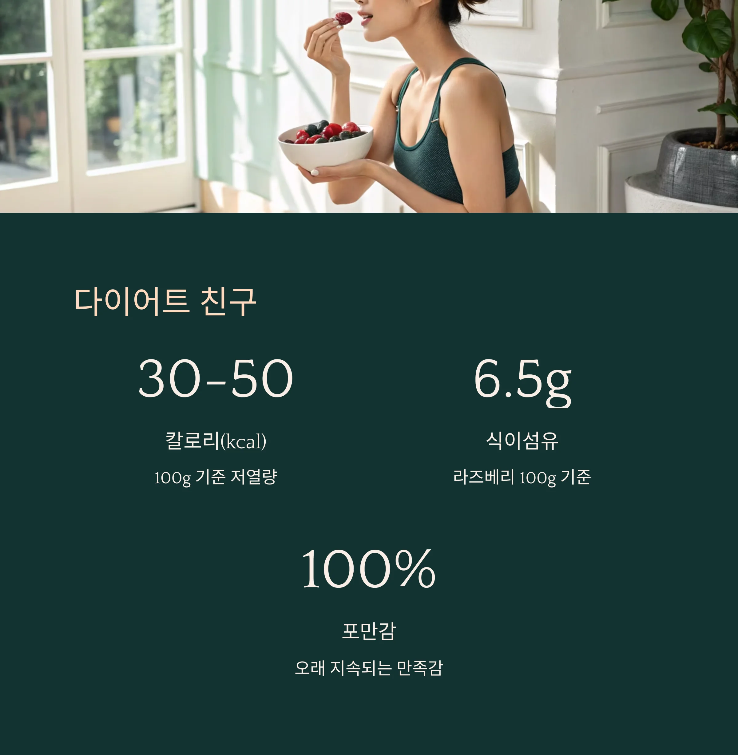 | 야생 산딸기 | 43 kcal | 4.2g |