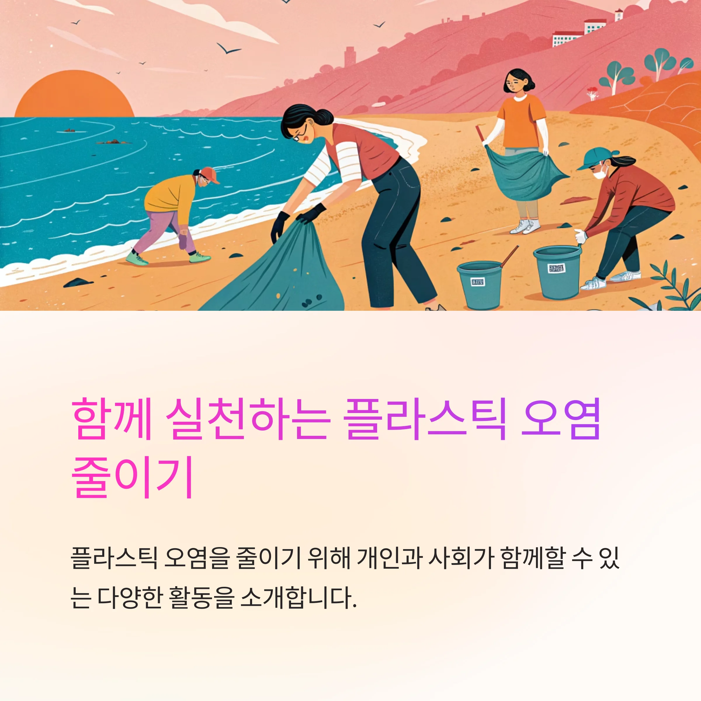 플라스틱 오염을 줄이기 위해 개인과 사회가 함께 실천할 수 있는 다양한 활동이 마련되어 있습니다.