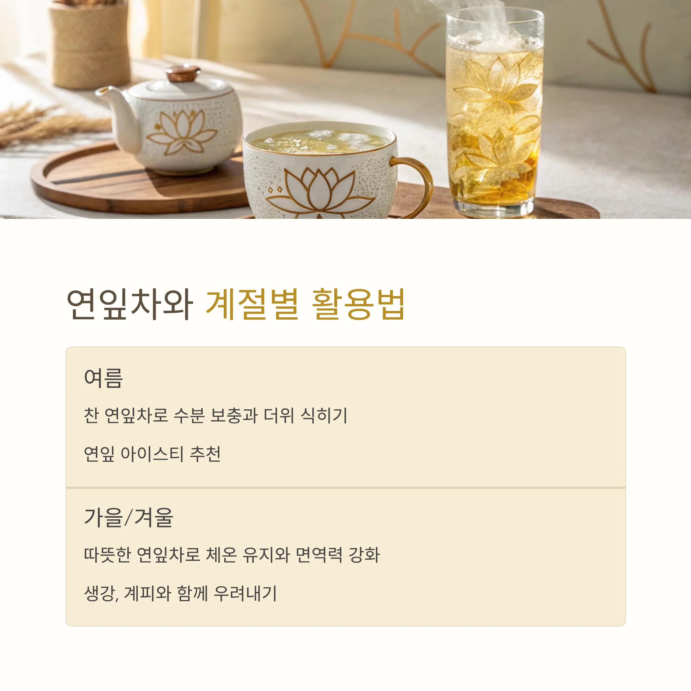 연잎차는 하루 12잔, 식후나 오후 시간대에 마시는 것이 가장 이상적입니다.