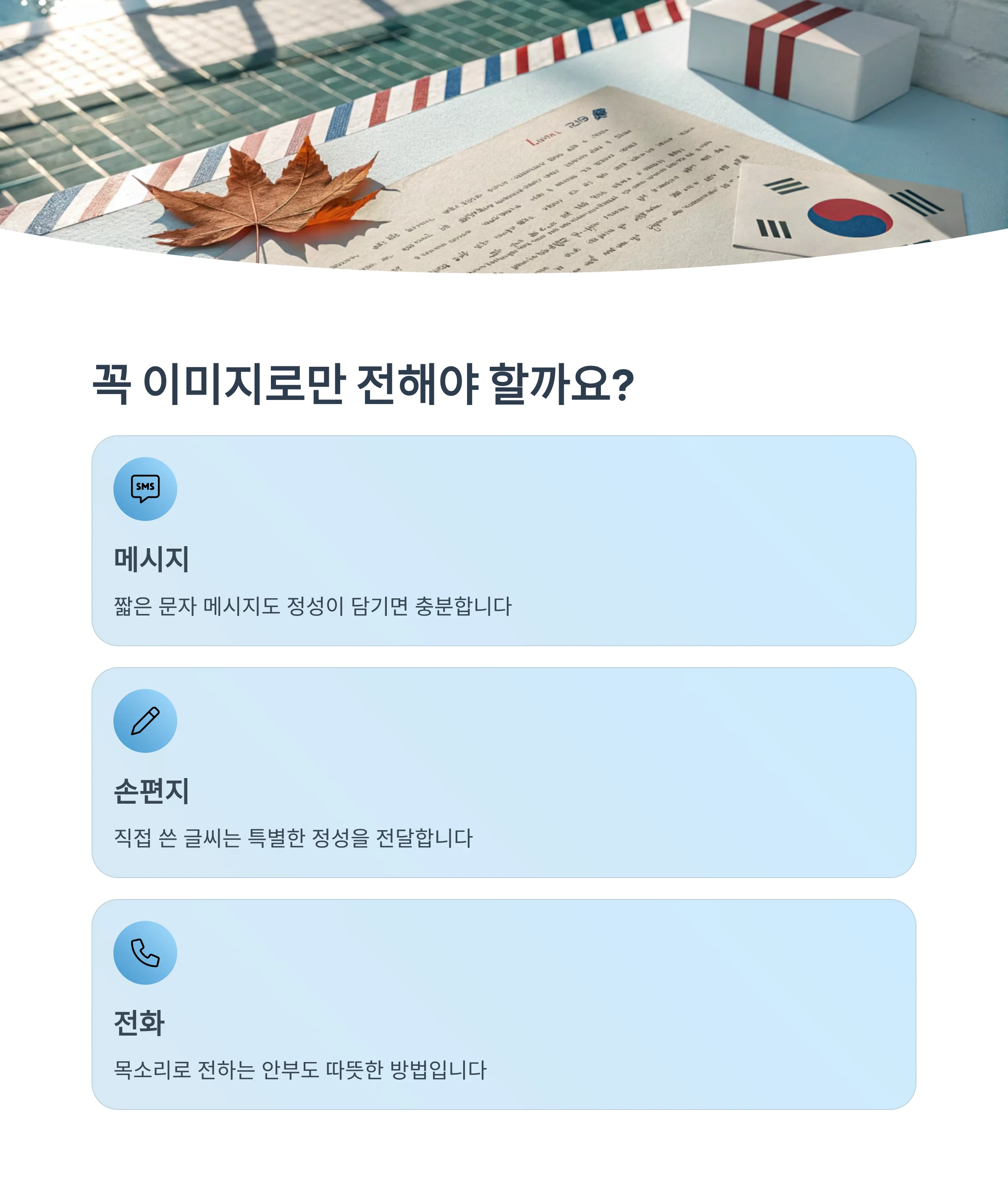 톡이나 문자에 이미지 한 장 첨부하는 것만으로도, 계절의 감성과 마음을 전달할 수 있는 좋은 방법입니다.