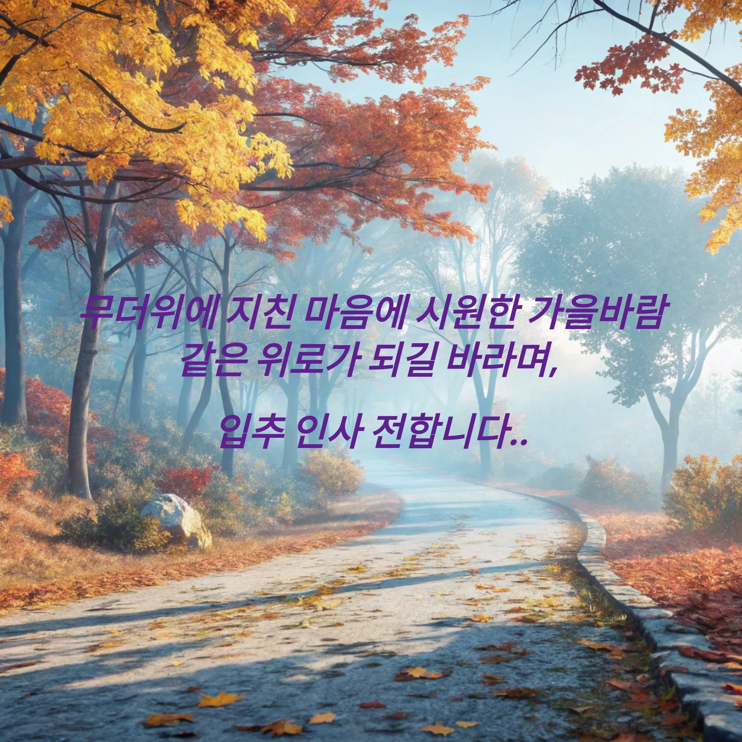 글자만 있는 인사도 좋지만, 감성적인 배경 위에 짧은 인사말을 담은 이미지는 더 큰 감동을 줍니다.