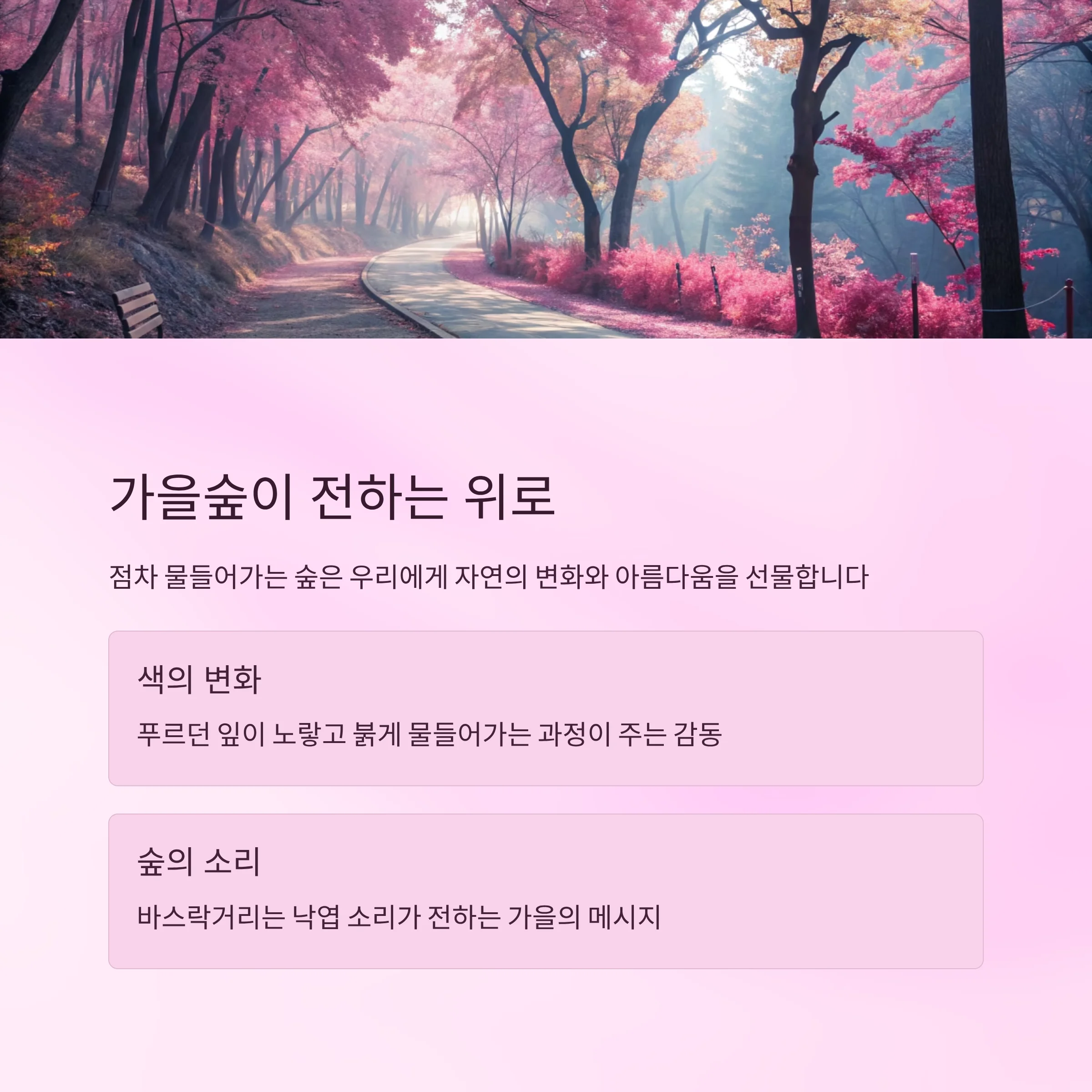 | 감성 배경 + 짧은 글귀 | 따뜻한 감성, 공감 유도형 |