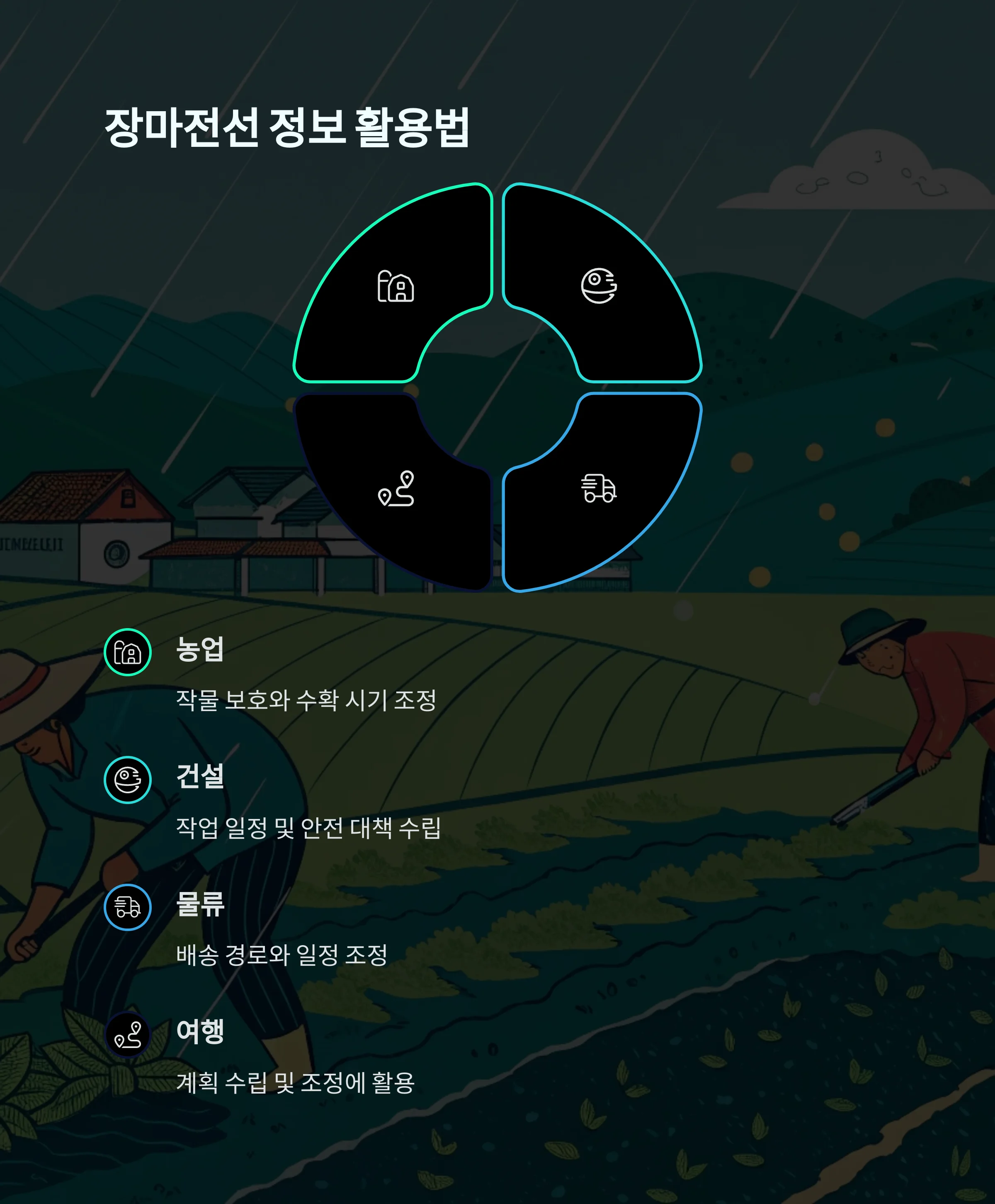장마전선 정보는 단순히 비가 올지 예측하는 데 그치지 않고, 일상생활과 산업 현장에서 다양한 방식으로 활용됩니다.
