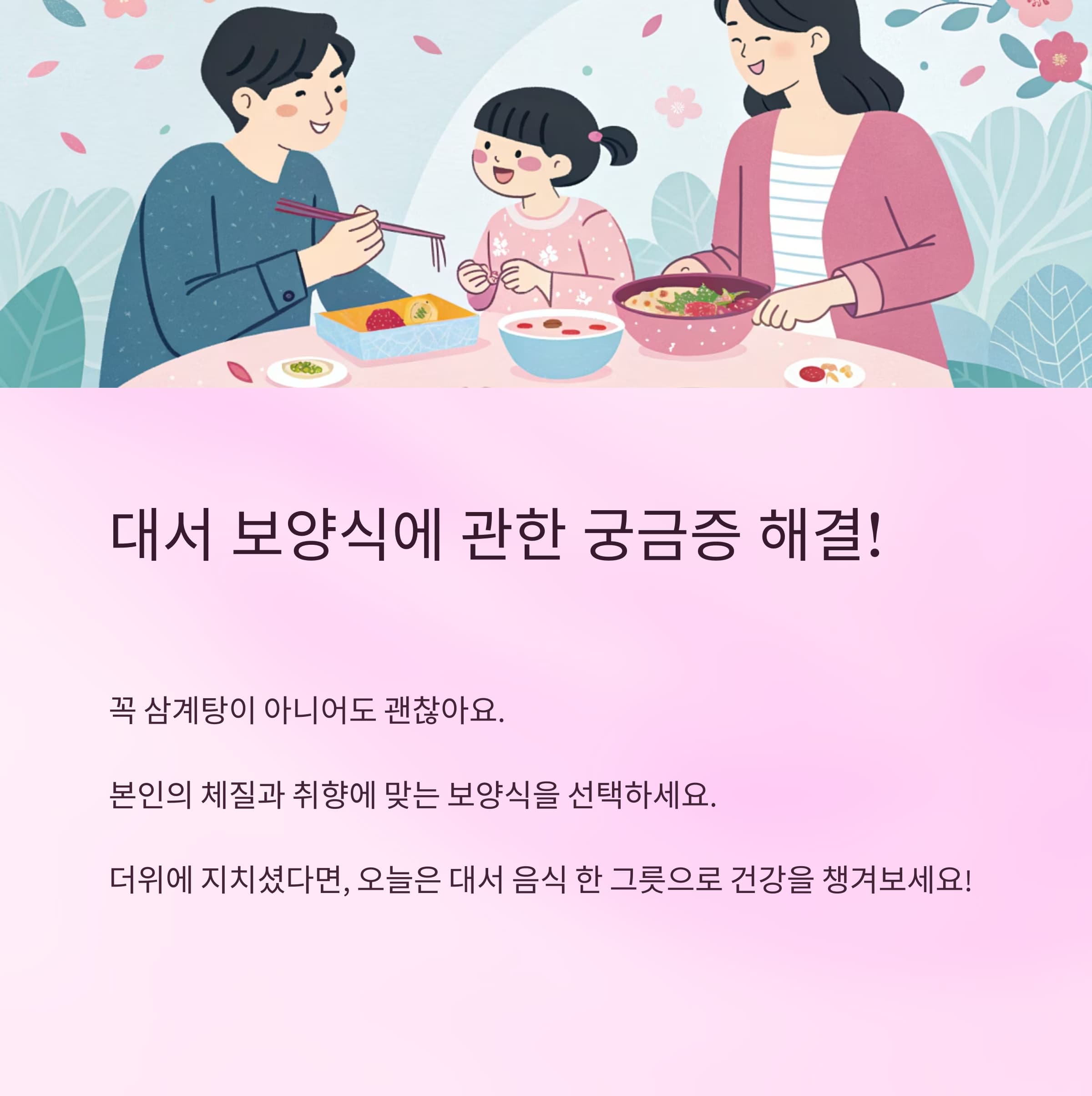 음식 한 그릇에 담긴 정성과 의미를 생각하며, 이 무더운 여름을 잘 이겨내시길 바랄게요!