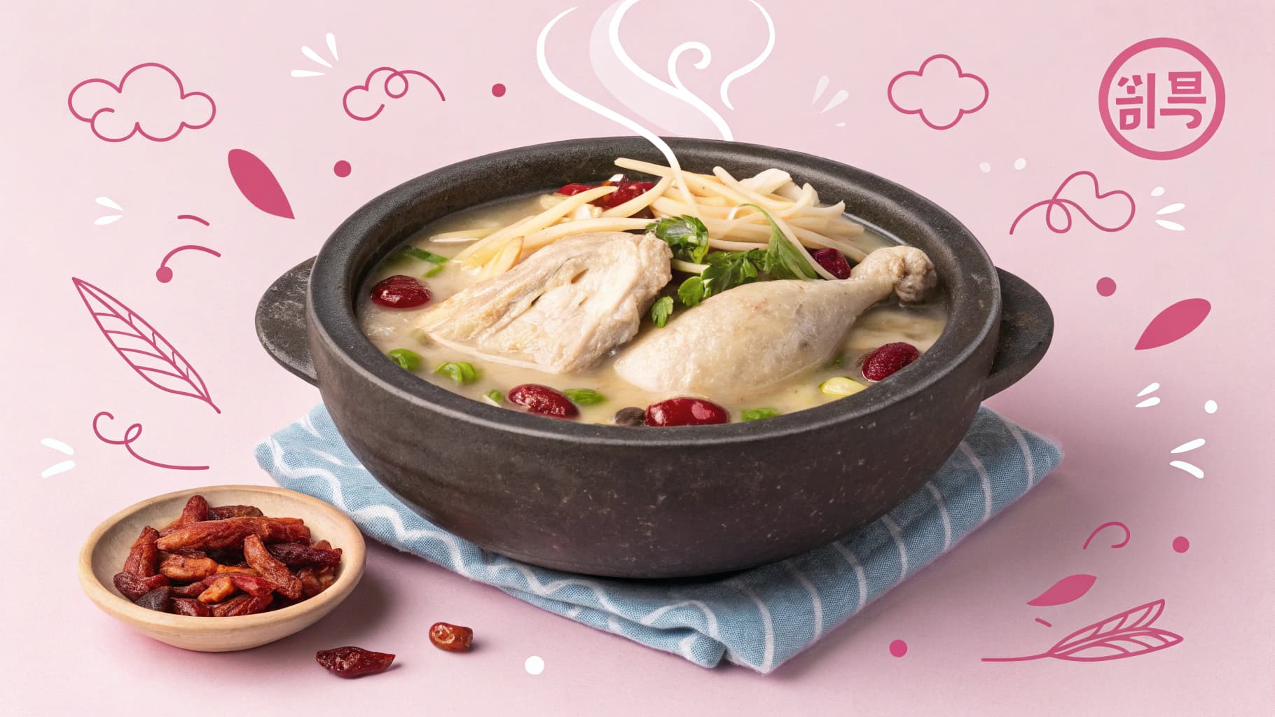 - 왜 먹을까?: 닭은 단백질이 풍부하고 소화가 잘돼서 여름철 원기 회복에 좋아요. 인삼의 사포닌 성분은 면역력을 높여줘요.