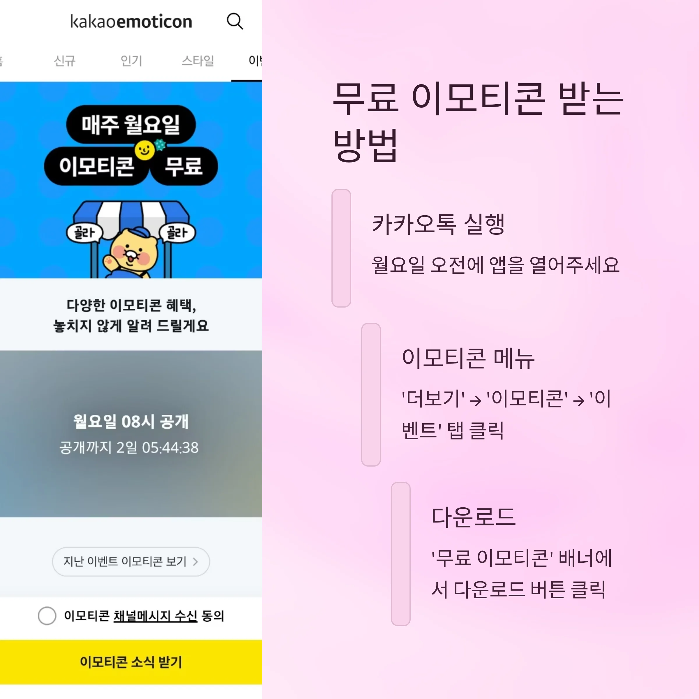 무료 이모티콘을 받기 위한 절차는 매우 간단합니다.
