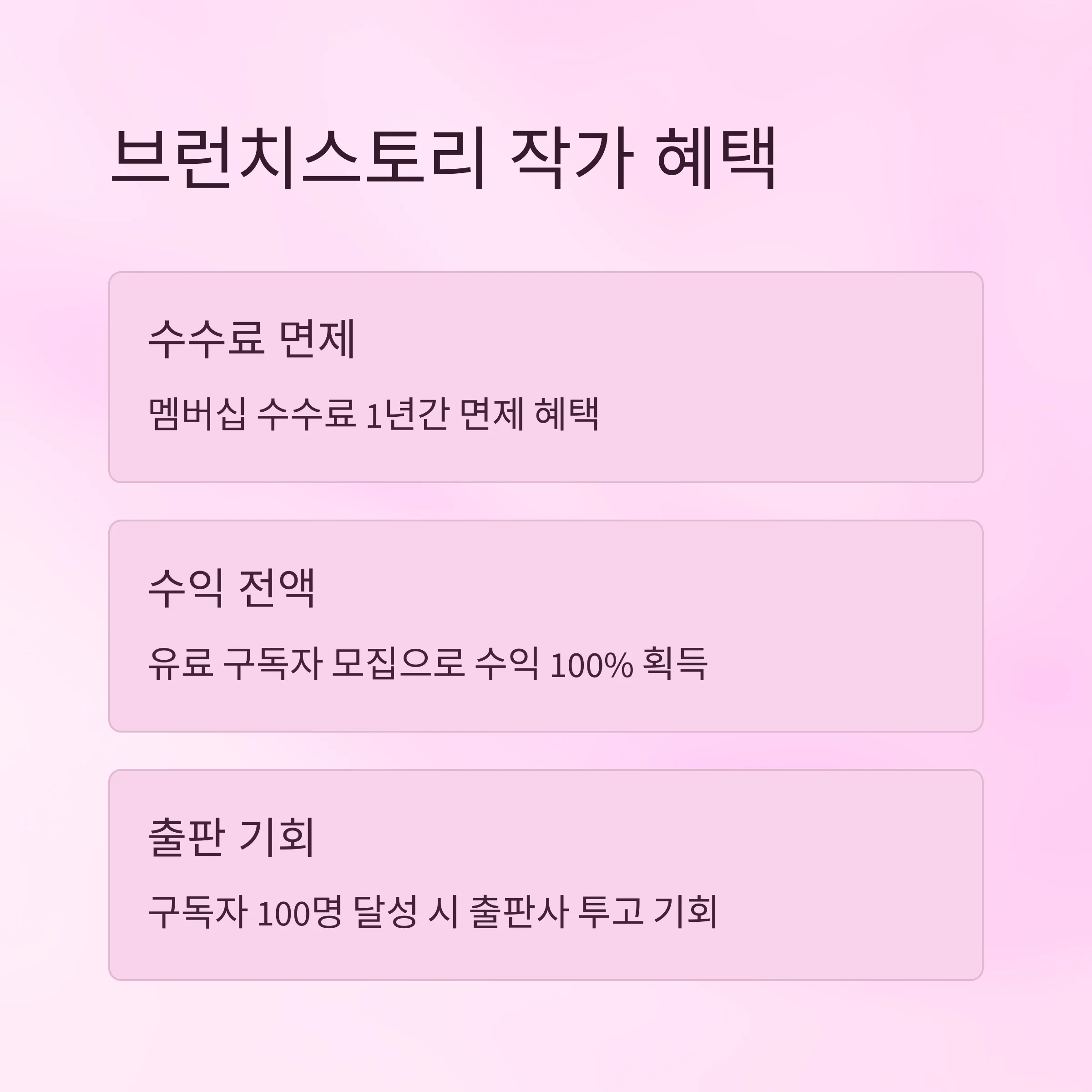 | 추가 혜택 | 브런치스토리 작가 수수료 1년 면제 |