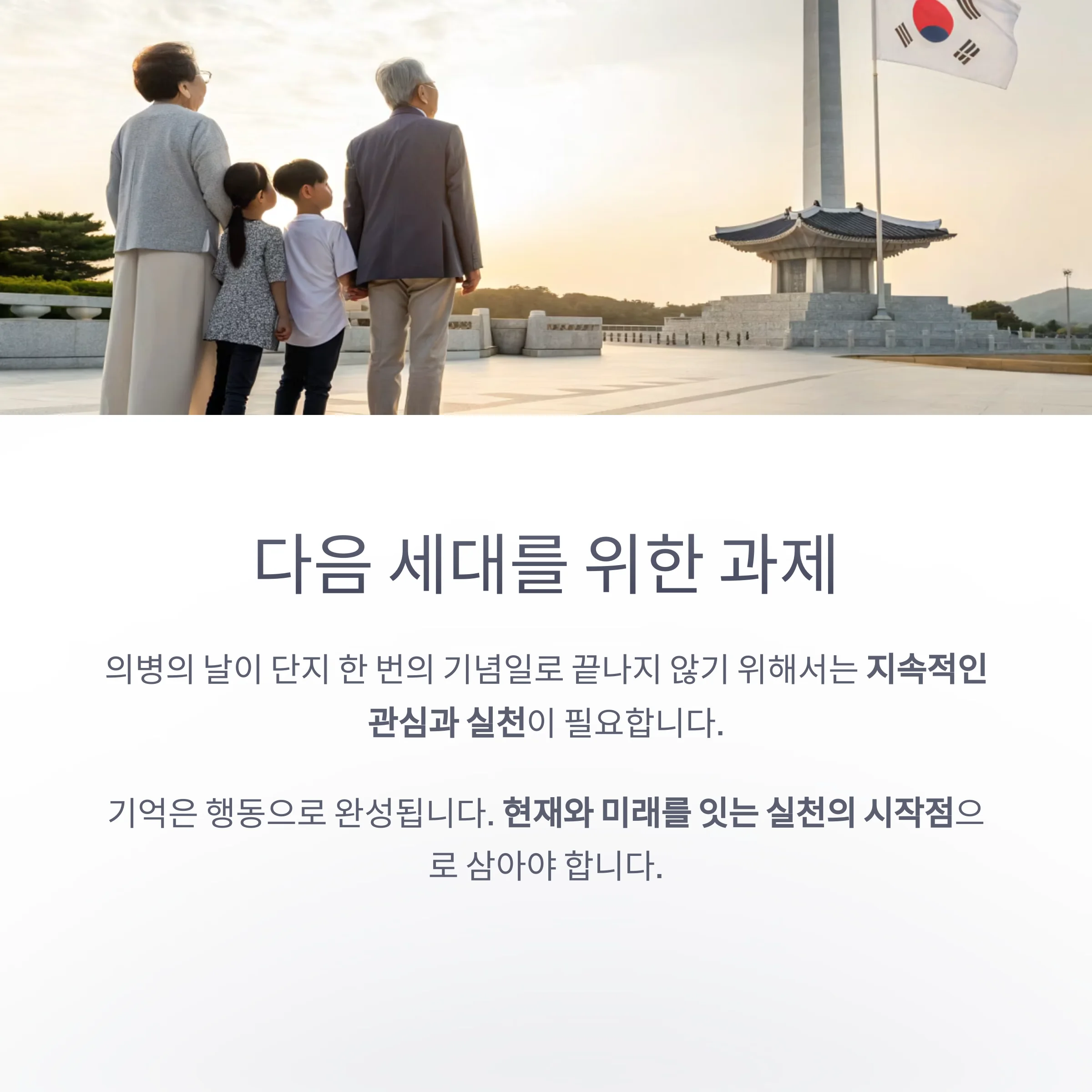 의병의 날은 단지 과거를 돌아보는 날이 아니라, 현재와 미래를 위한 교훈을 되새기는 날입니다.