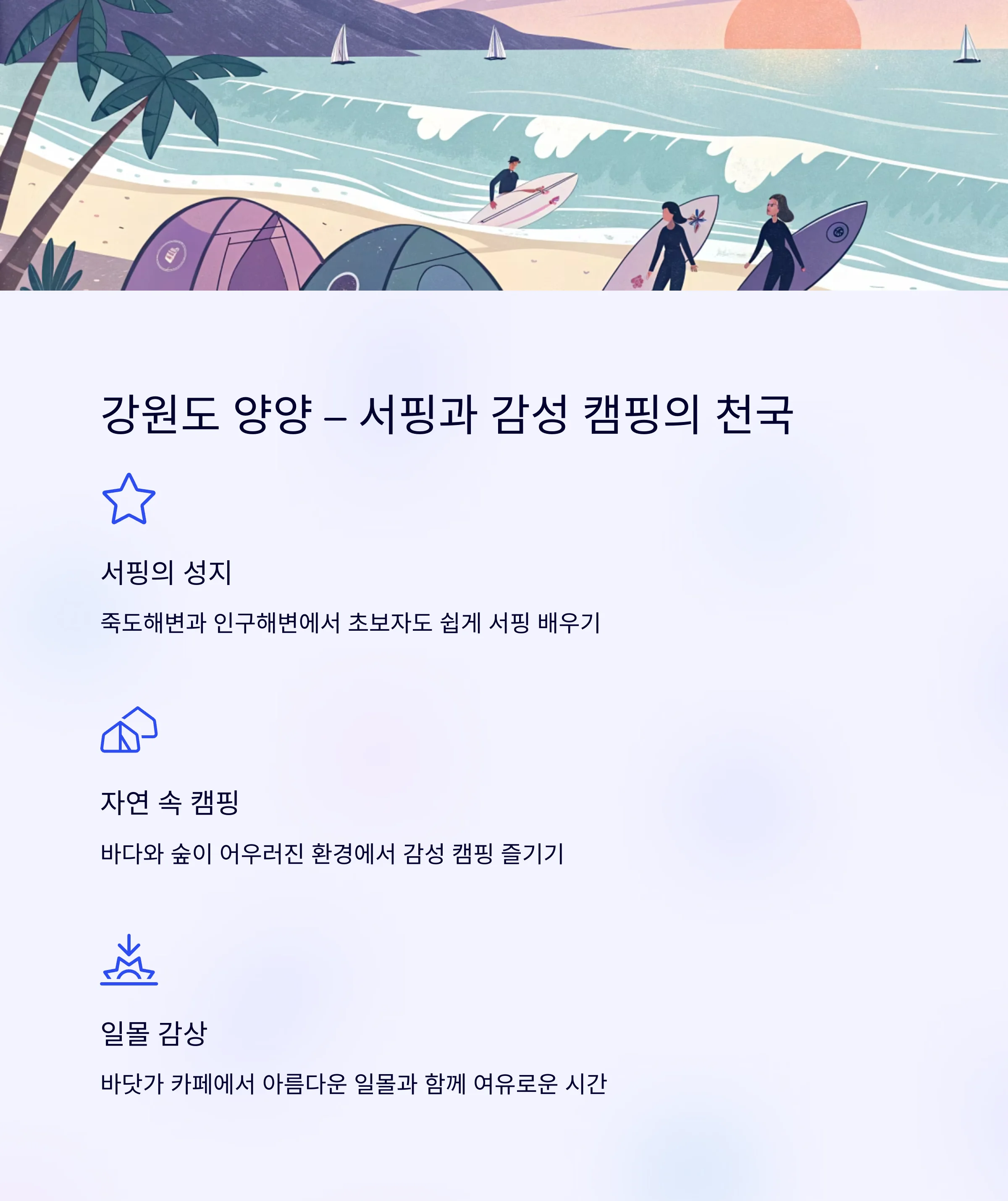 2. 강원도 양양 – 서핑과 감성 캠핑의 천국